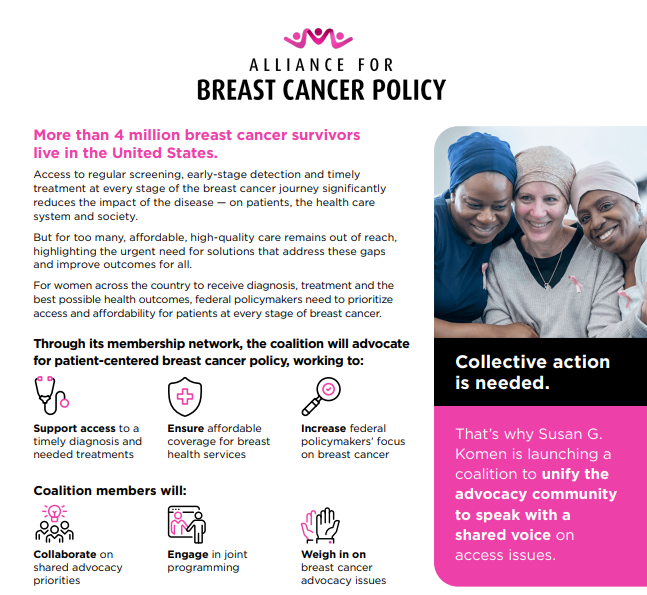 Explore resources from The Alliance for Breast Cancer Policy.