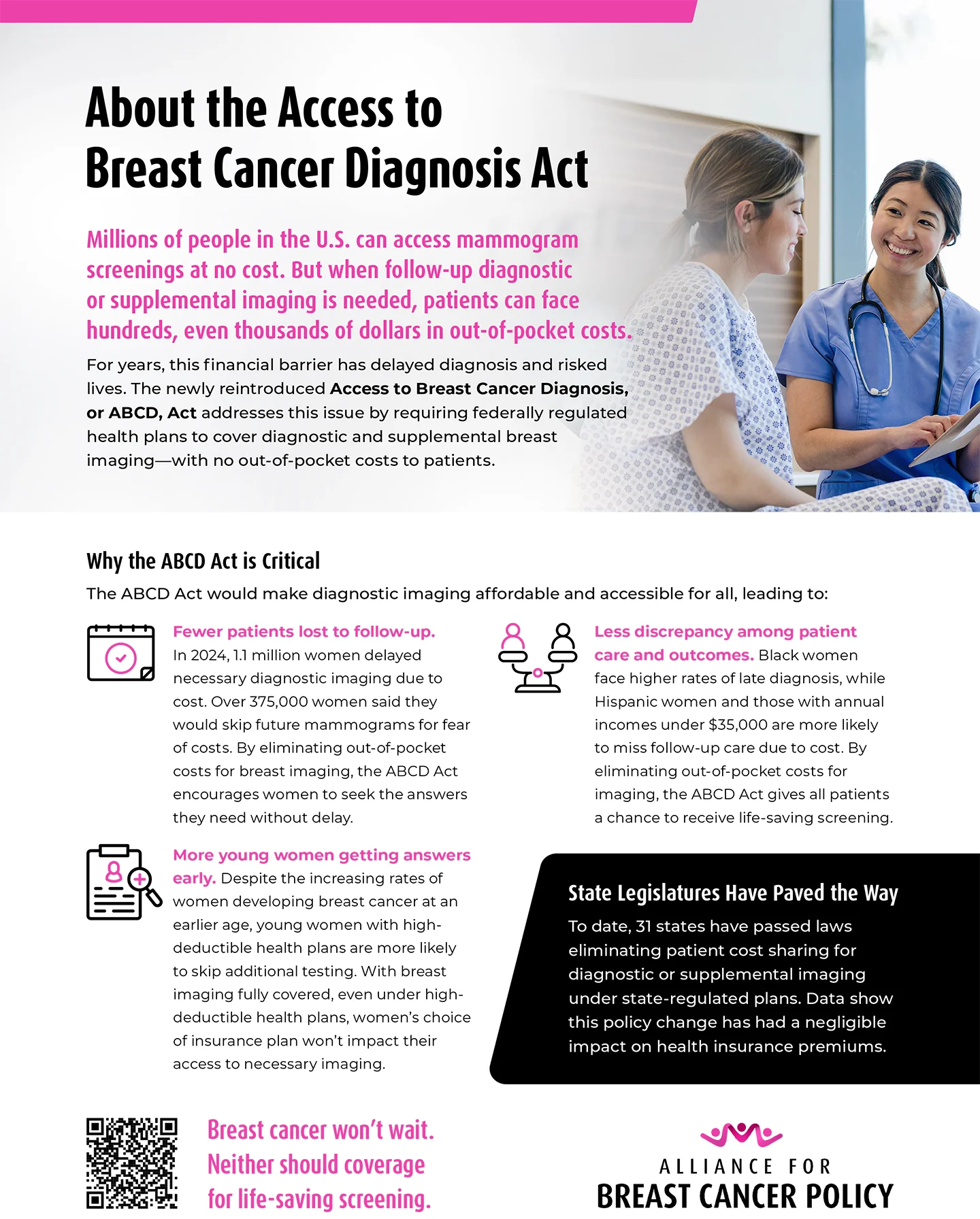 Millions of people in the U.S. can access mammogram screenings at no cost. But when follow-up diagnostic or supplemental imaging is needed, patients can face hundreds, even thousands of dollars in out-of-pocket costs.